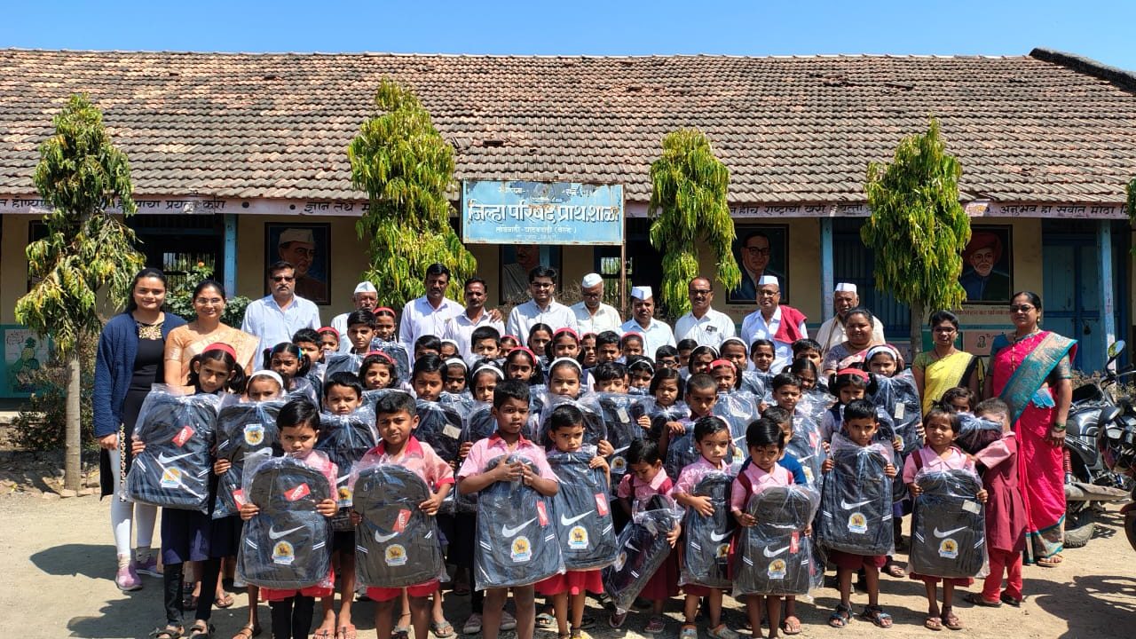 - माजी विद्यार्थ्यांकडून मुलांना दप्तर वाटप