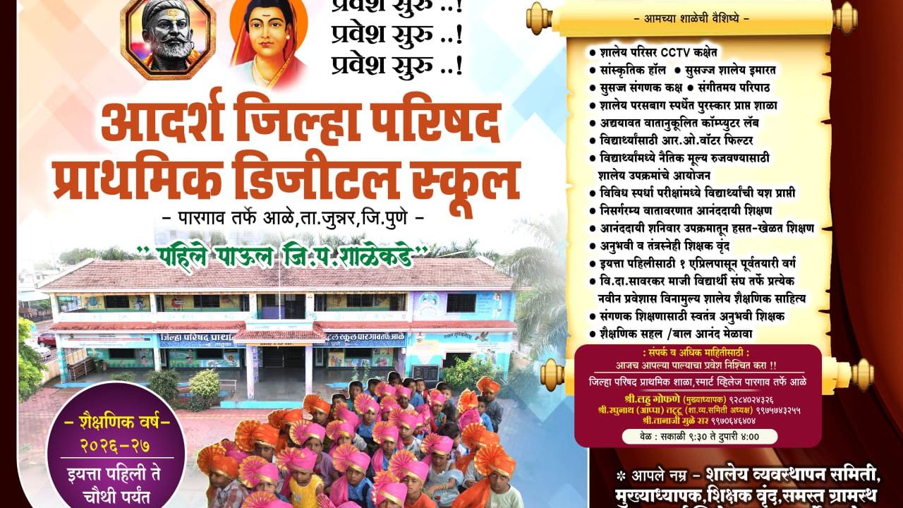 - आदर्श जिल्हा परिषद प्राथमिक डिजीटल स्कूल पारगाव १ ली ते ४ थी साठी प्रवेश सुरू