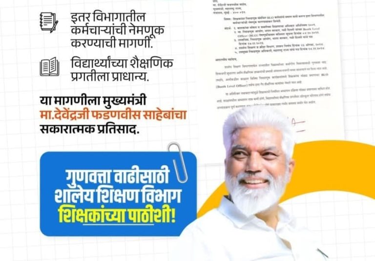 मुंबई दि.२६:- राज्यातील शिक्षकांना केवळ अध्यापनावर लक्ष केंद्रित करता यावे आणि शैक्षणिक गुणवत्ता वाढावी, यासाठी शालेय शिक्षणमंत्री ना. दादाजी भुसे...