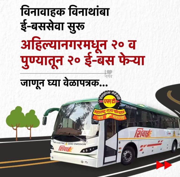 नगर दि.१८:- महाराष्ट्र राज्य परिवहन महामंडळाने दिवाळीचा मुहूर्त साधत अहिल्यानगर ते पुणे दरम्यान अहिल्यानगर ते पुणे विनावाहक विनाथांबा ई-बससेवा सुरू...
