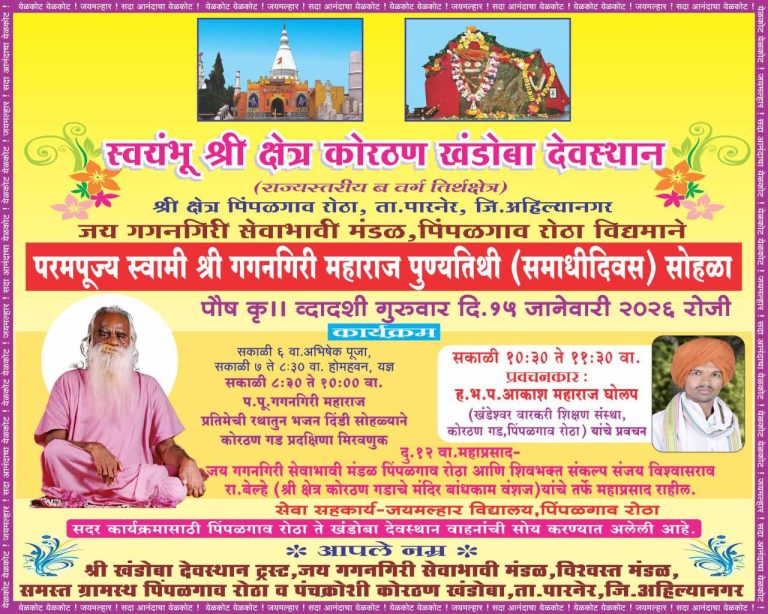 कोरठण दि.१२:- महाराष्ट्रातील लाखो भाविकांचे कुलदैवत, श्रद्धास्थान तीर्थक्षेत्र असलेल्या श्री क्षेत्र कोरठण खंडोबागड पिंपळगाव रोठा,ता.पारनेर जिल्हा. अहिल्यानगर या राज्यस्तरीय 'ब'वर्ग...