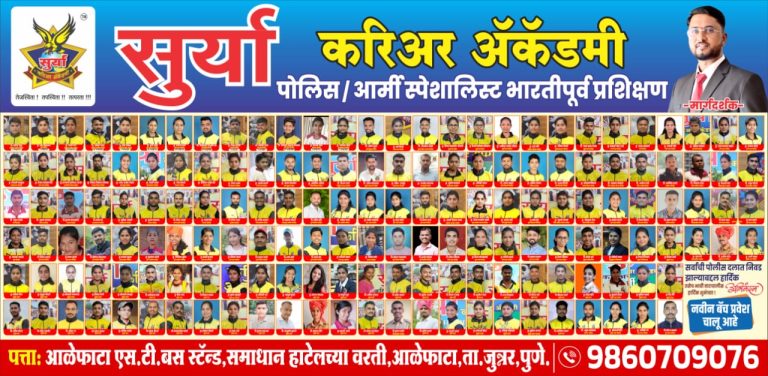 आळेफाटा दि.२४:- आळेफाटा येथील 'सुर्या करिअर ॲकडमी' मध्ये विद्यार्थ्यांसाठी प्रवेश सुरू असल्याची माहिती संचालक श्रीकांत मदने यांनी दिली. आळेफाटा (ता.जुन्नर)...