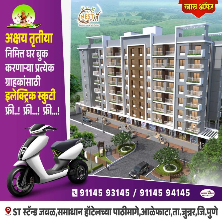आळेफाटा दि.१७:- इलेक्ट्रिक स्कूटी मिळवण्याची सुवर्ण संधी आळेफाटा येथील 'नेस्ट इन पार्क' मध्ये ग्राहकांसाठी चालून आली आहे. ही ऑफर अक्षय...