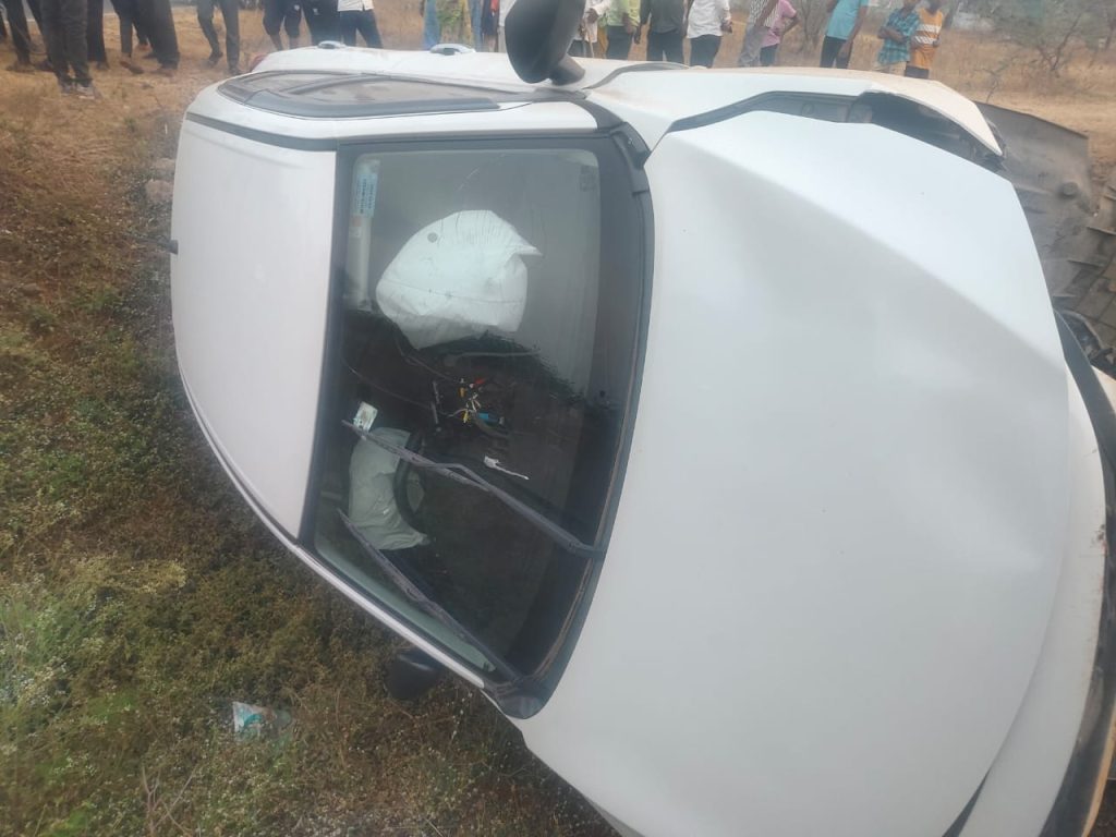 या बाबत सविस्तर माहिती अशी की, मंगळवार दि.१३ रोजी सायंकाळी सहा वाजण्याच्या सुमारास एमएच १५ जेएम ४३२१ ही चारचाकी गाडी बेल्ह्याच्या दिशेने येत असताना चालकाचे नियंत्रण सुटल्याने रस्त्याच्या खाली गेली व पलटी झाली. गाडीतील एअरबॅगमुळे चालक थोडक्यात बचावला व जखमी झाला.