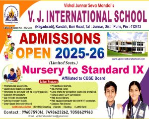 वडगाव कांदळी दि.३:- विशाल जुन्नर सेवा मंडळ संचलित व्ही. जे. इंटरनॅशनल स्कूल, नगदवाडी- कांदळी तसेच जुन्नर तालुका क्रीडा संघटना यांच्या संयुक्त विद्यमाने भव्य आंतर-शालेय दोरी उडी (Rope Skipping) स्पर्धा २०२६ उत्साहपूर्ण आणि खेळभावनेच्या वातावरणात पार पडली.