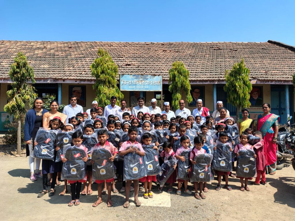 माजी विद्यार्थ्यांकडून मुलांना दप्तर वाटप